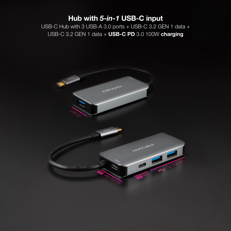HUB USB-C 5 PUERTOS USB 3.2 15 CM NANOCABLE