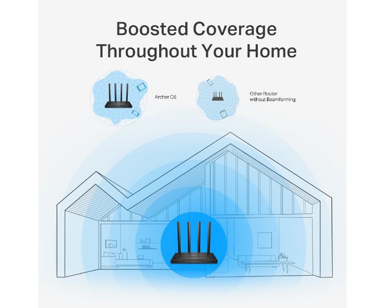 MU-MIMO permite que el Archer C6 sirva a varios dispositivos a la vez. Se acabaron las congestiones de ancho de banda y la latencia. Todos los dispositivos obtienen sus datos más rápido y el Wi-Fi se utiliza de forma más eficiente.